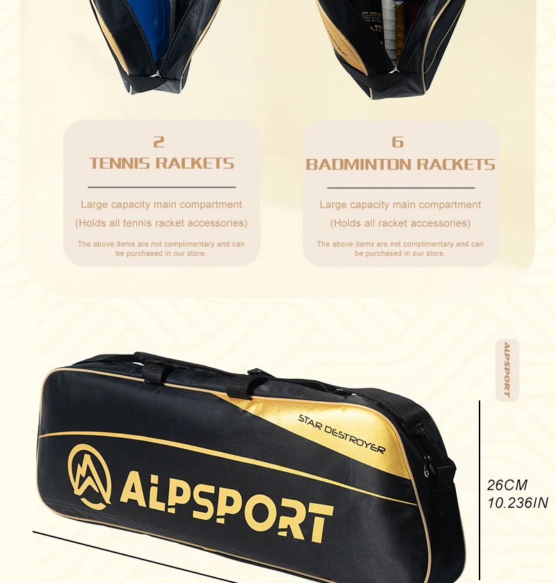 Atletas de Clube: Espaço de sobra para raquetes de reserva e uniformes.
